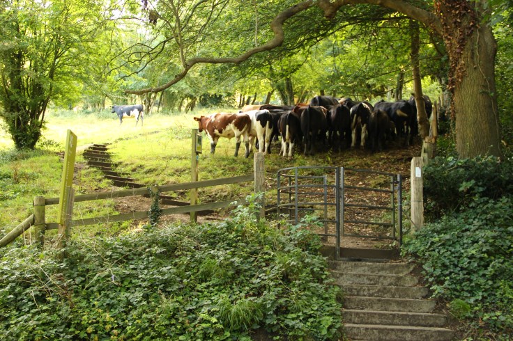 I knew I was really entering the countryside when I had to go through a kissing gate and pass beside these lovely creatures. My pamphlet came in handy as I flapped it against my legs and said, “move cows.”