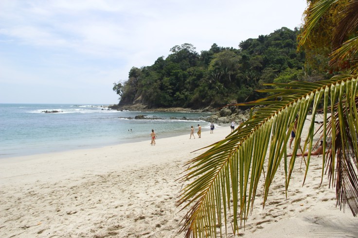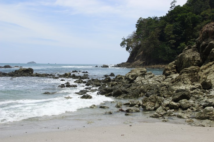 Once we had traveled along the pathways within the park it was time to head to the beach. Manuel Antonio has two beach areas on either side of a small peninsula…Playa Espadilla Sur and Playa Manuel Antonio. We found ourselves at Playa Manuel Antonio first and sat here for awhile enjoying the sun. This side has some rocky outcrops at one end and so is quite protected from the surf.