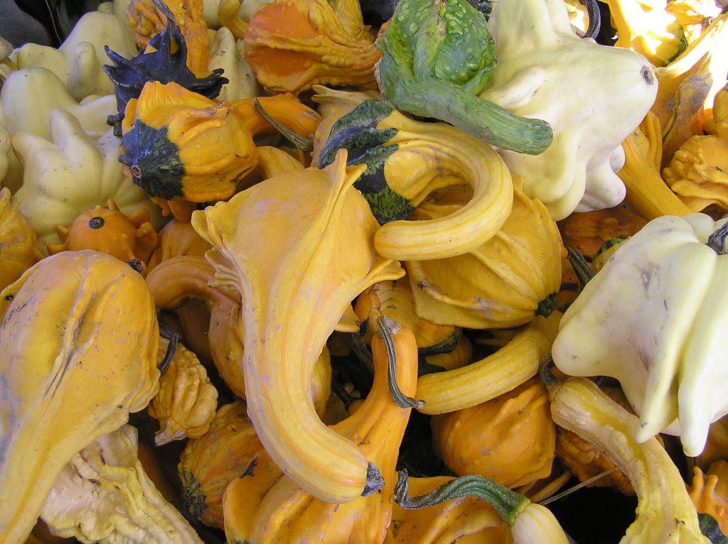 Many farmers plant and maintain a selection of fruits and vegetables throughout the summer months. In the lower mainland you will find corn, broccoli, cabbage, carrots, potatoes and peas, along with a wide selection of berries. In the fall, the gourds, with their unique colours and shapes, are one of the final products to be harvested.