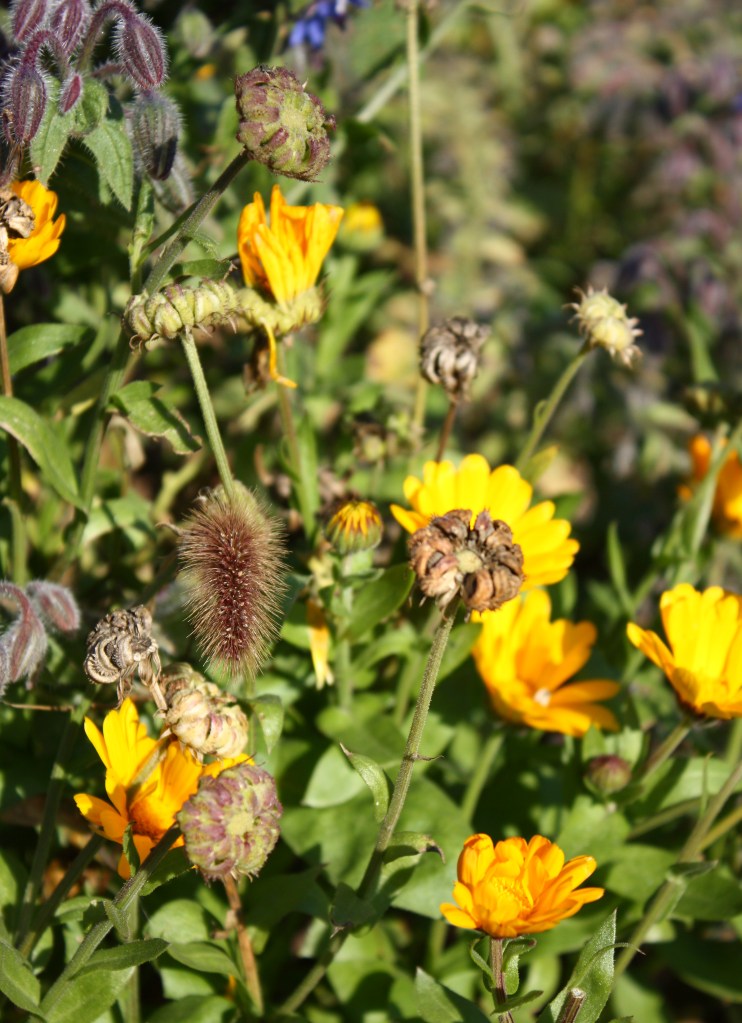 Some farms have flowers blooming alongside the other crops. The flowers are used for beautiful bouquets in the summer months before going to seed in the fall. The increase in the number of bees is benefiting from these flowers and more hives are being built for the collection and sale of honey.