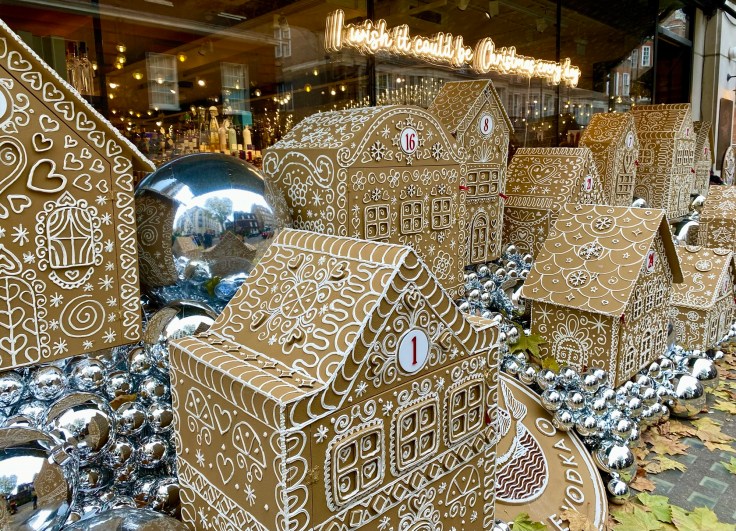 We found a wonderful arrangement at Hedonism Wines on Davies Street. Made to look like gingerbread houses these 24 intricately designed boxes held a different scene inside each one. We spent a fair amount of time here!