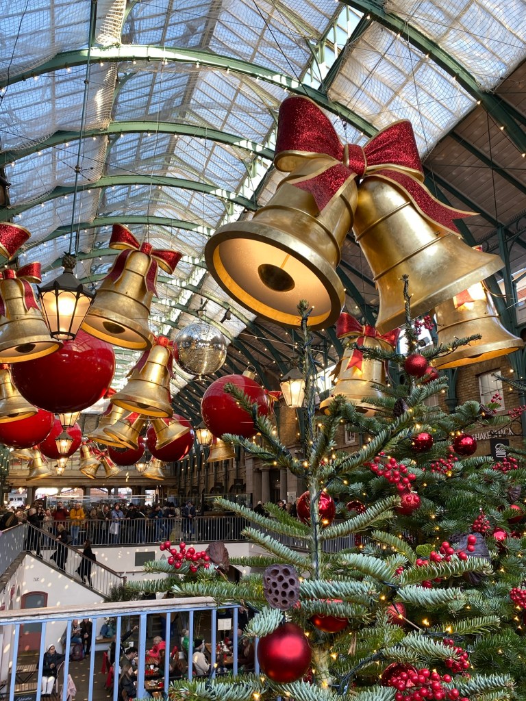Then it was on to Covent Gardens. We found this area well decked out with impressive decorations, lots of vendors, and festive music. Although we visited on a weekday it was unfortunately super crowded and hard to make our way around the piazza that is there.