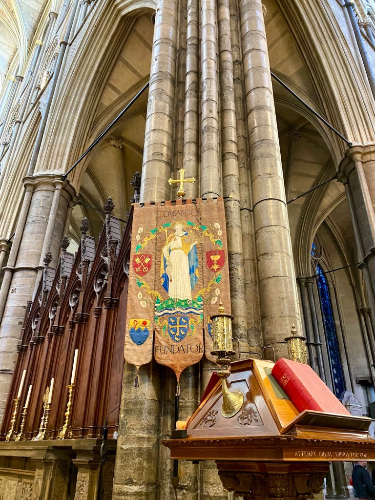 The final stop after you reenter the Abbey is the Coronation Chair. There have been forty monarchs crowned here since 1066 and this chair has been the one used for more than 700 years. During a coronation the chair is placed in the centre of the Abbey facing the high altar. The legs of the chairs rest on lions, the symbol of England.