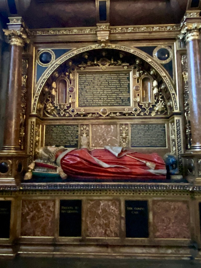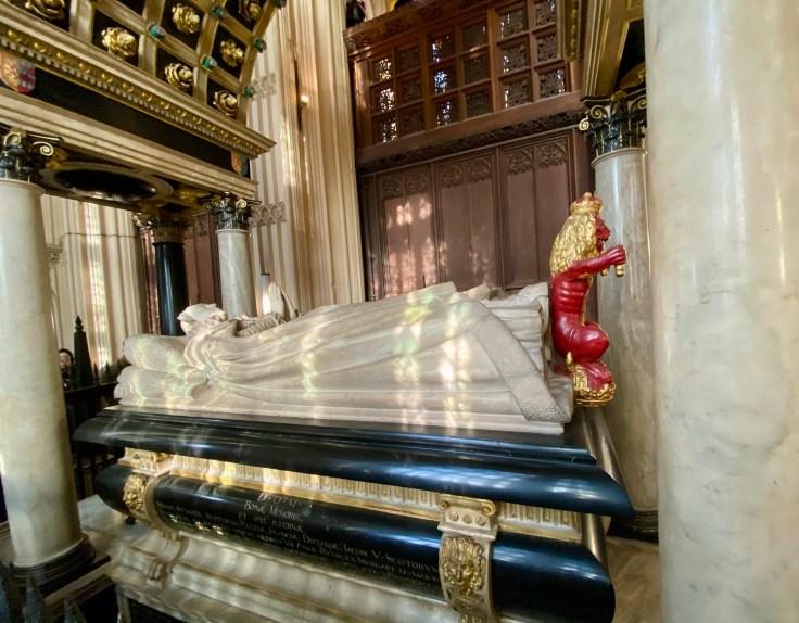 Most of the royal tombs are in The Lady Chapel which was built between 1506 and 1516 by Henry VII. The highlight is the fan-vaulted ceiling which is carved from stone and was built on the floor and later put into place onto the ceiling. The Knights of the Bath would meet here with their banners proudly flying above them and their coats of arms behind them.